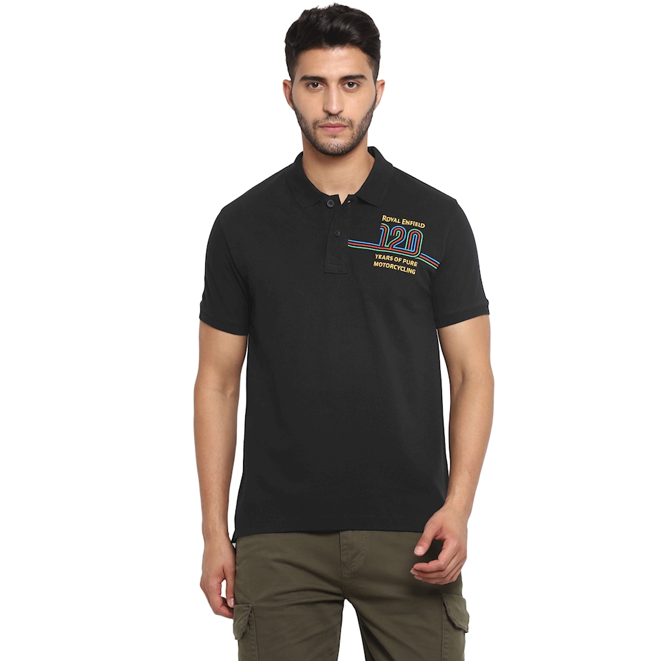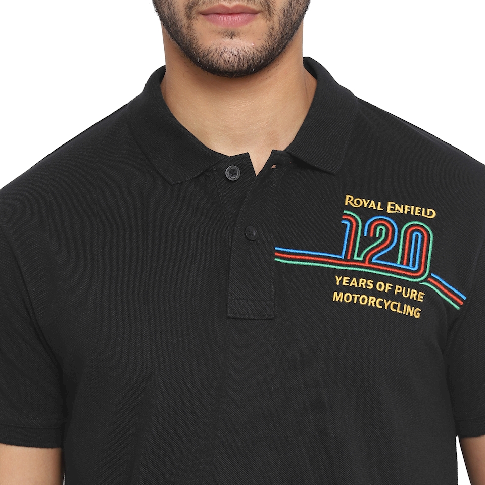 This is a Royal Enfield 120th Anniversary black polo shirt!