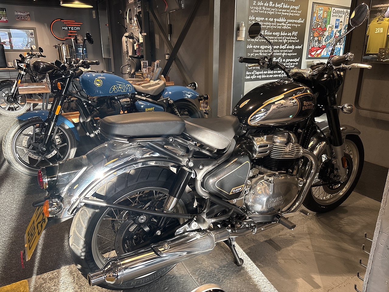 DEMO AVAILABLE! The Royal Enfield Classic is loved across the globe - but now with 650cc to play with it's double the fun, double the charm & double the character! It's now twice the carftmanship too! Oozing eligance & gorgeous looks, a silky smooth engine as well as dynamic handling make this THE ultimate retro bike. Don't let the classic styling fool you, the new 650 is no slouch, at the heart of the bike we have Royal Enfields dreamy twin motor. Showa suspension paired with that stunning chassis from the Super Meteor & Shotgun create a bike that's simply effortless to ride! Whilst having an major update including a new heart, the bike still keeps to its rich heritage & still keeps the same ethos of pure motorcycling. Prices - Vallum Red £6499 / Teal £6599 / Black & Chrome £6799 Buy your next motorcycle from “The Home Of Serious Spannerin!” We are Royal Enfield SPECIALISTS and we pride ourselves on our bike preparation. Any new bike sold by us is very carefully prepared & we can offer a FULL range of accessories to make sure your new bike is EXACTLY how you want it! Your PX is welcome!