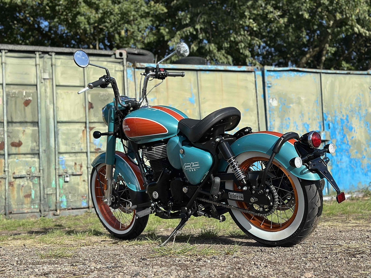 As Cool AS ICE! There is nothing else like this! It just makes me think of the beach! Based on the Classic, this Bobber style beauty features Mid Ape Handlebars, TUBELESS Whitewall Tyres, Wider Rims, Bobber Style Seating And Stunning Paint! The feet forward riding position just works! It's not a big bike, in fact the seat height is just 750mm but it feels really roomy! The high handlebars give you loads of leverage so it feels really light - PLUS your knee's get extra room & you can really stretch out! If you want to arrive in style - GOAN CLASSIC all the way!