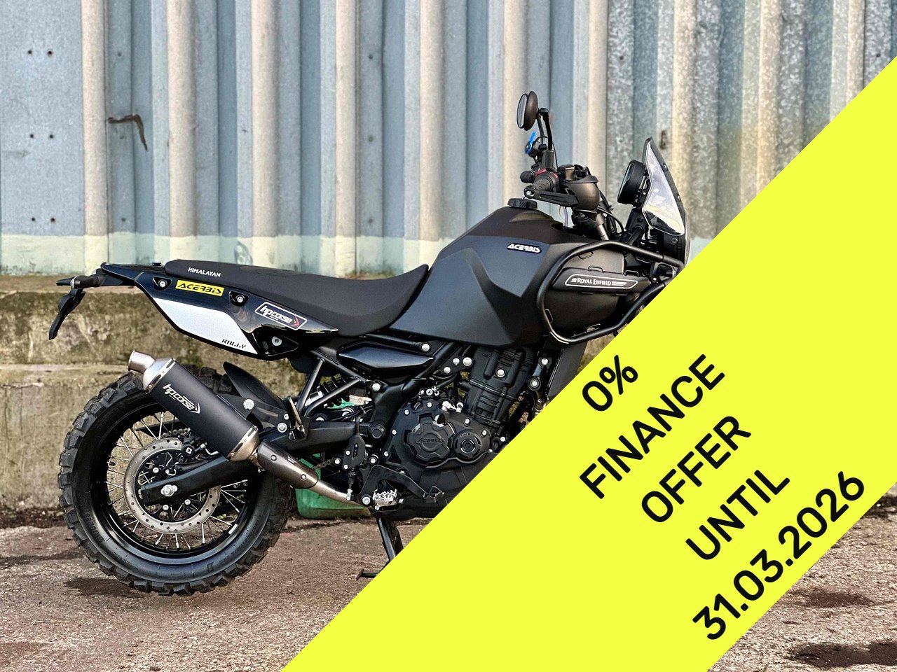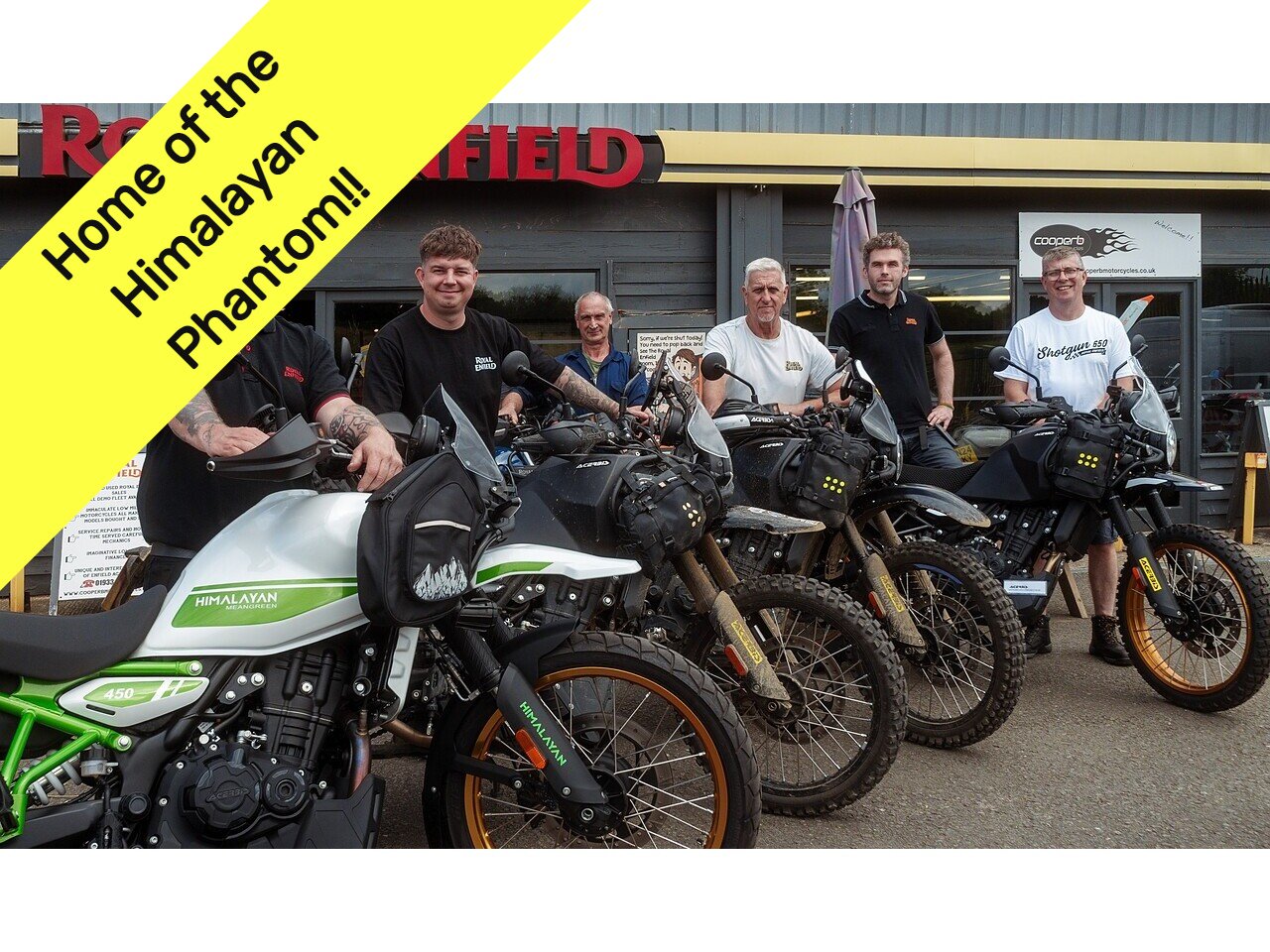 ULTIMATE HIMALAYAN? The Himalayan 450 is a great bike, but the Phantom is next level! Better suspension, more power, way better sound & even more FUN! We have carefully chosen the very best parts to put together a bike that looks more aggressive & is actually more robust, lighter & better suited to Rally and hardcore adventure. BASIC PHANTOM PACKAGE - K-Tech RCU RAZOR LITE EVO Rear Shock, Cooperb Bar Risers (10/20/30mm) Cooperb Front Hose Relocation Kit & Front Lower Mudguard Delete, Pivot Pegz, Acerbis Handguards, Acerbis 23Ltr tank, Acerbis Upper Fork Guards, Acerbis Short Gaitors, Acerbis Chain Guide, Acerbis Skid Plate, Acerbis X-Power Engine Cases, Acerbis Radiator Mesh, RE Rally Seat & Seat Unit, Hagon Custom Rear Shock, HP Corse Full Exhaust System, DNA Combo Induction Kit, Fuel X Pro Plus & Bridgestone AX41's or SIMILAR. (Standard parts included) In addition, we have our own Phantom Editions which also feature Front Hose ReRoute & Lower Fender Delete,K-Tech Suspension & Built Lightweight Wheels including an 18" option. WE ALL OWN, RIDE & LOVE HIMALAYAN'S - it's our religion! Come in to our Sherpa Showroom & see for yourself! BUY FROM US - RIDE WITH US - FULL CALENDER OF CUSTOMER EVENTS. We offer nationwide delivery at extremely reasonable rates, so you can have the bike delivered to your door!