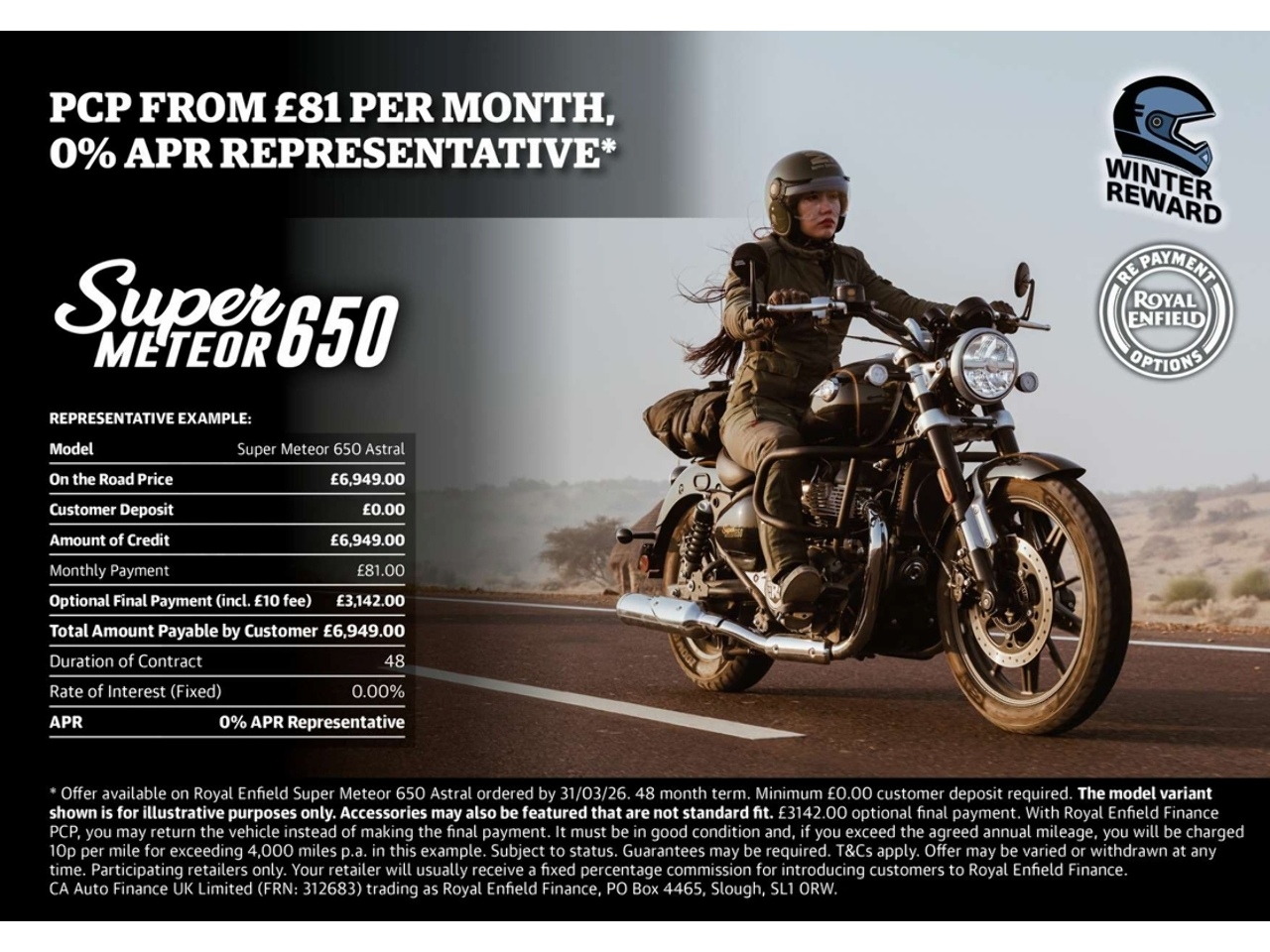DEMO AVAILABLE! MCN give the Super Meteor 5 Stars & they reckon its the best value cruiser you can buy. We agree! The Harris derived chassis is an absolute joy & the wonderful motor is just spot on! The Showa suspension looks & feels quality & the fit and finish of this bike is now a match for any manufacturer. With a low 740mm anyone can enjoy the THREE YEARS warranty & Road Side Assistance. We have a demo bike available & lot's of accessories & upgrades in stock & ready for you to personalise the bike. You NEED ONE OF THESE!