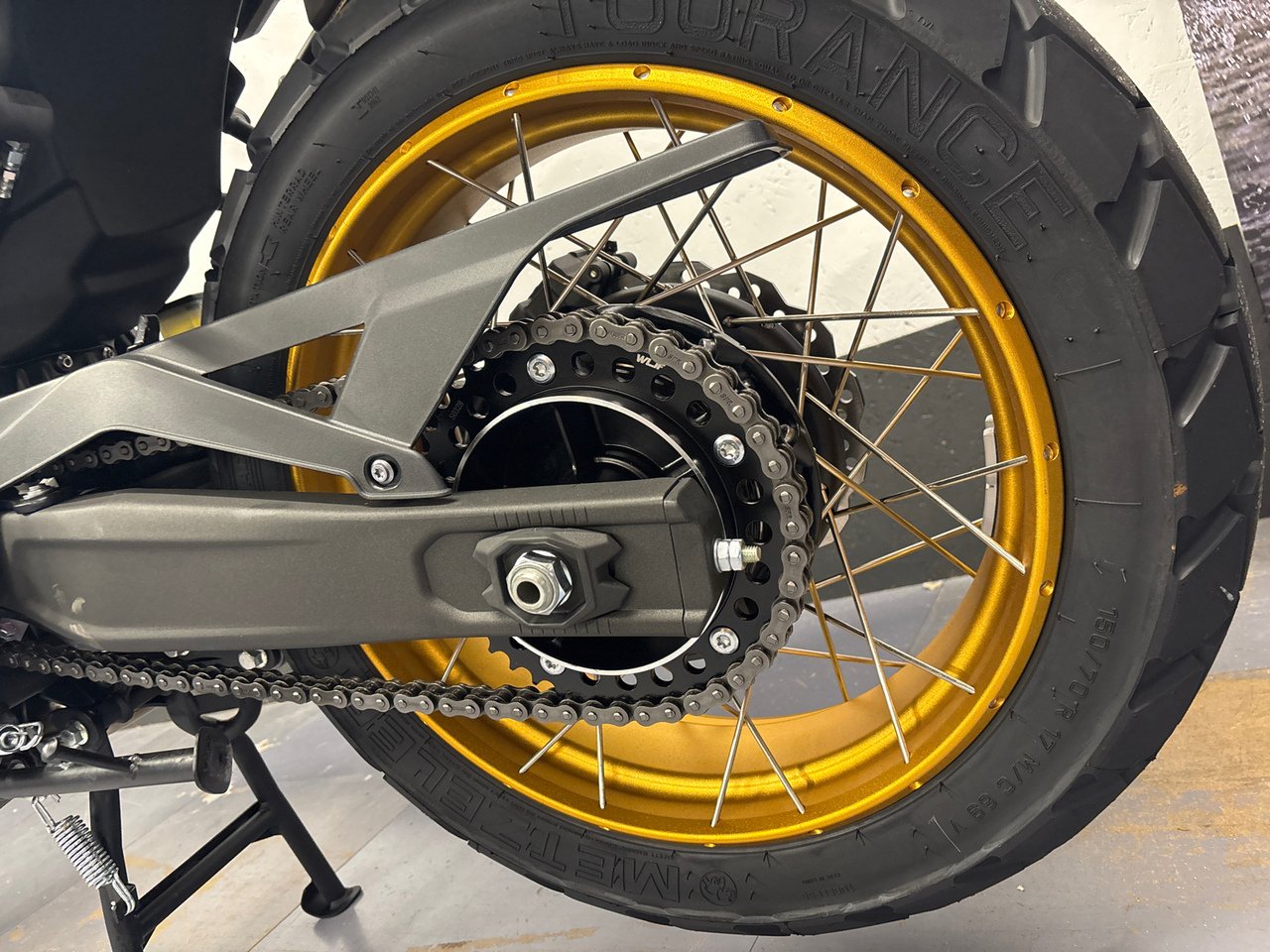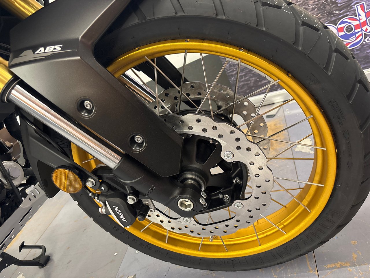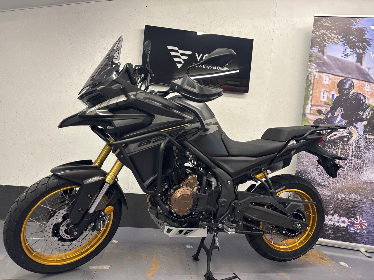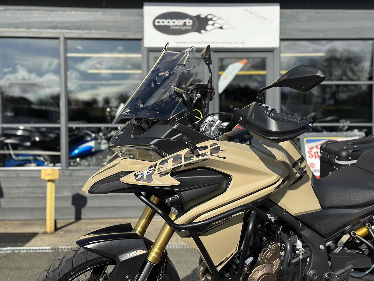BOOK YOUR DEMO The ALL NEW DS625X has a fabulous new chassis that offers superb, confidence inspiring handling! Featuring adjustable 41mm Kayaba USD forks & Shock the bike has a genuine premium ride! The new motor has the 270 degree crank for a stonking, charachter filled 63 BHP & 42 ftlb of torque so it's great fun! Handy tech too - 7" TFT display with connectivity, turn by turn navigation, tyre pressure monitors, rider modes & traction control. You also get a 1080P forward facing camera, USB & 12 V charger, back lit switch gear, adjustable screen, engine bars, luggage rack, sump guard, LED spots, hand guards, centre stand and a Slipper Clutch! This fabulous bike has the option of a FULL 3 BOX LUGGAGE KIT FOR JUST £699 only when bought with the bike! COMING JULY - RESERVE YOURS NOW £99 DEPOSIT DESERT SAND OR BLACK KNIGHT £5999 + £300 OTR = £6299 OTR Your PX WANTED!!