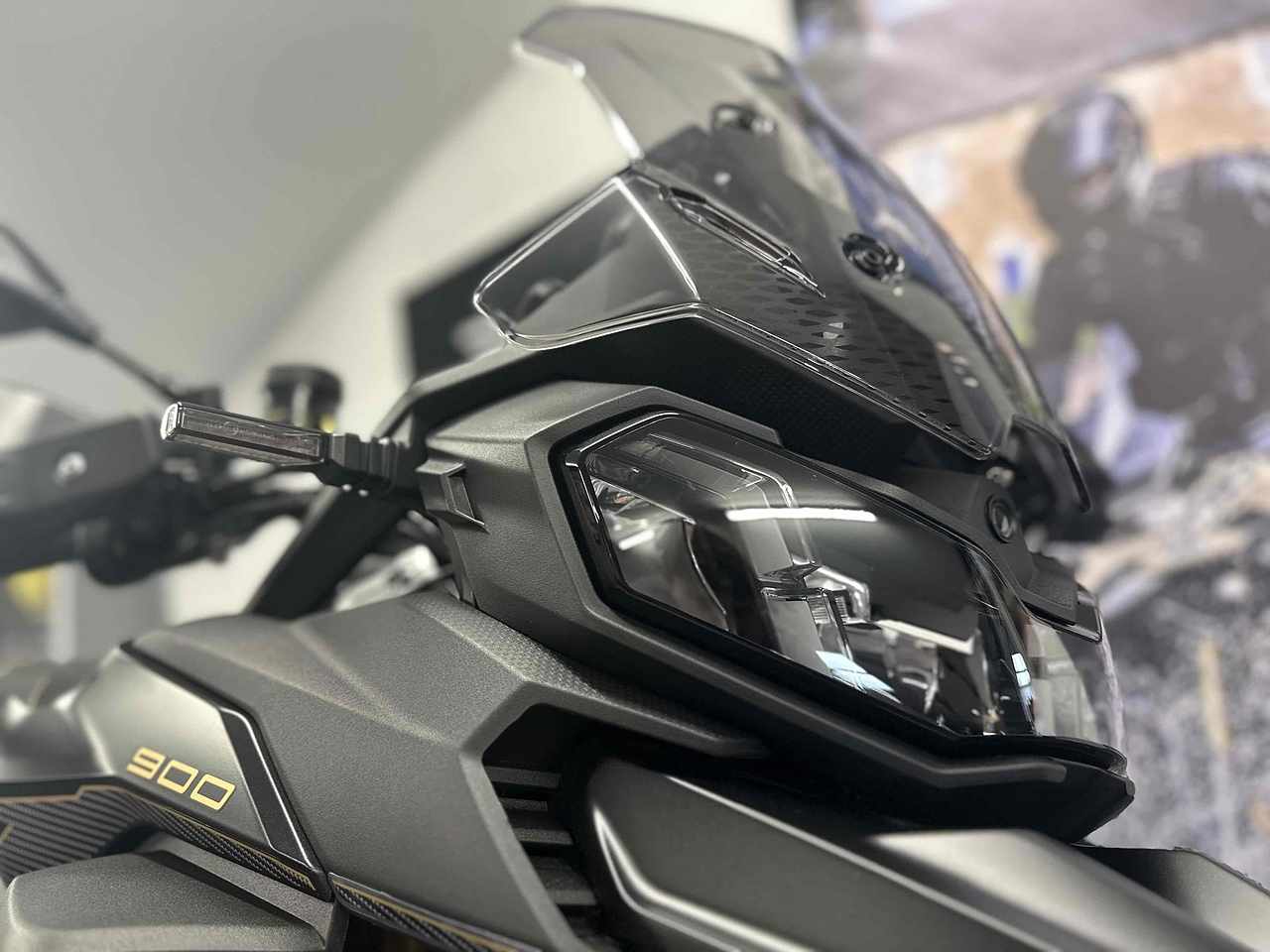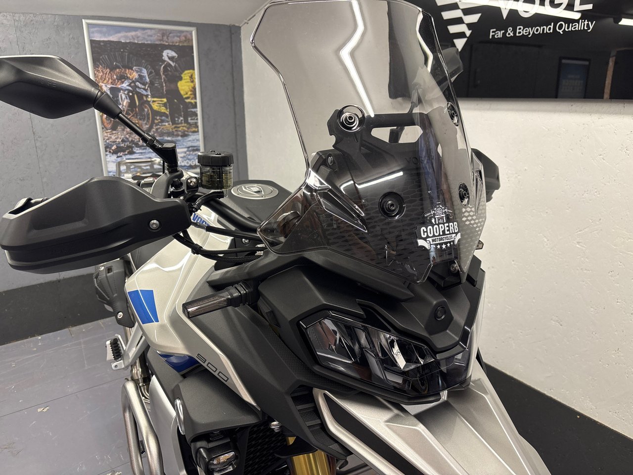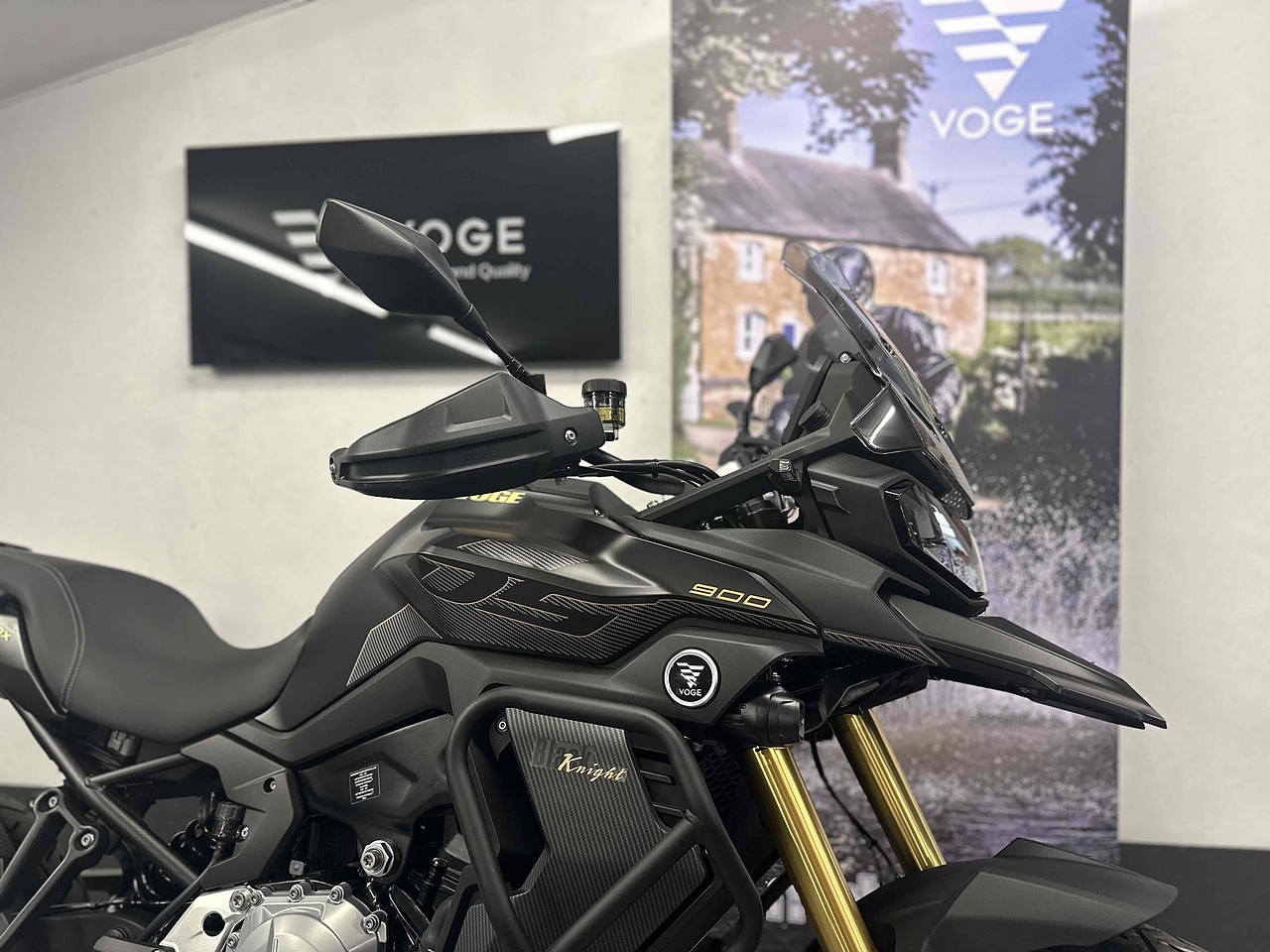 VOGE motorcycle Far & Beyond Quality! The best value Adventure bike available has had an upgrade from the 2024 model: Navigation now uses Carbit ride screen mirroring for an improved experience. The ABS system has been upgraded to 6-axis Bosch cornering ABS. Luggage is no longer fitted as standard, but can be added for just £699 (RRP £1,399).giving you a choice of different luggage options such as soft luggage etc. A brilliant bike is now even better! The SPEC on these bikes is amazing. The stunning & proven Loncin motor produces a stonking 95BHP & 95 NM of torque. It has 4 rider modes - Enduro, Sport, Economy & Rain. Also, Slipper Clutch, Shift Assist, Cruise Control, Keyless Ignition, Radar Blind Spot Assistance, 7" TFT Display with phone connectivity, Tyre Pressure Monitoring, Forward Facing Camera, 12V AND USB Socket, Heated Grips, Heated Seat, Adjustable Screen and FULL LED lighting including Spots! The TFT can connect to your phone and in Broadcast mode will mirror your phone ecactly! Genuinely this feature is MEGA! Ride our demo & be AMAZED by how good this bike really is! All this for just £8499 + £300 OTR = £8799 OTR! SPECIAL OFFER - FULL 3 PIECE ALLOY LUGGAGE £699 (ONLY WHEN PURCHASED WITH THE BIKE!) Aviator Blue, Black Knight or Lime Green.