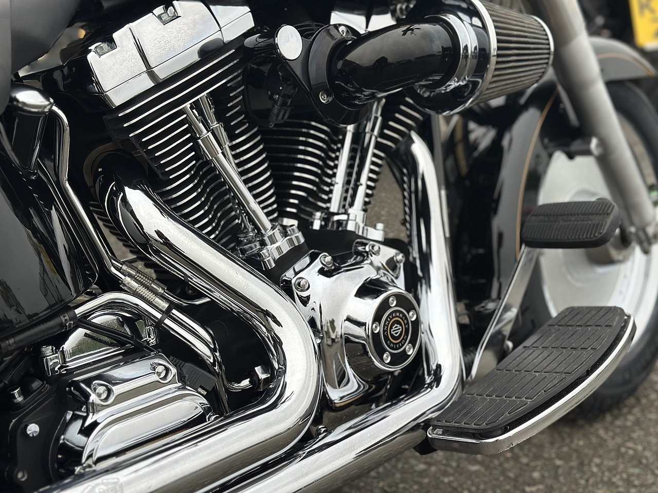 Celebrating 15 years the Anniversary Edition is a very special bike! Featuring a Screamin Eagle 1550cc motor, chrome wheels & 24 carat gold tank emblems this SUPER RARE bike really stands out! This one has Vance & Hines Longshot's, Screamin Eagle Heavy Breather & Ignition Module. Also HD Chrome Rack & Leather Saddlebags. This bike will get a service & MOT from our own Harley trained, time served mechanic when sold. Buy your next motorcycle from “The Home Of Serious Spannerin!” We are VERY fussy about the bikes we sell in our showroom! We vigorously check the bikes before choosing the very best examples, with good service history. Then, our time served, expert, mechanics carefully prepare them to the very highest standards. We only use the best parts & oils in our workshop. We check everything twice, perform a road test and then check again! The bike will only leave when we are happy that its right!