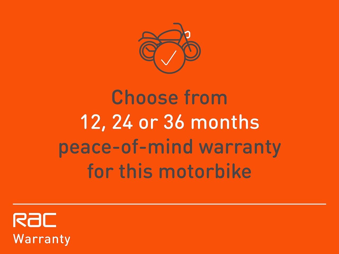 As you will see on our website, we are a RAC partner dealer. We always include a MINIMUM of 3 months RAC warranty & 12 months FREE Road Side Assistance. Extended Warranties are available for 12, 24 and 36 months. This means you will have total peace of mind that you are buying the right bike, with the very best back up there is. Warranty Prices on the Website.