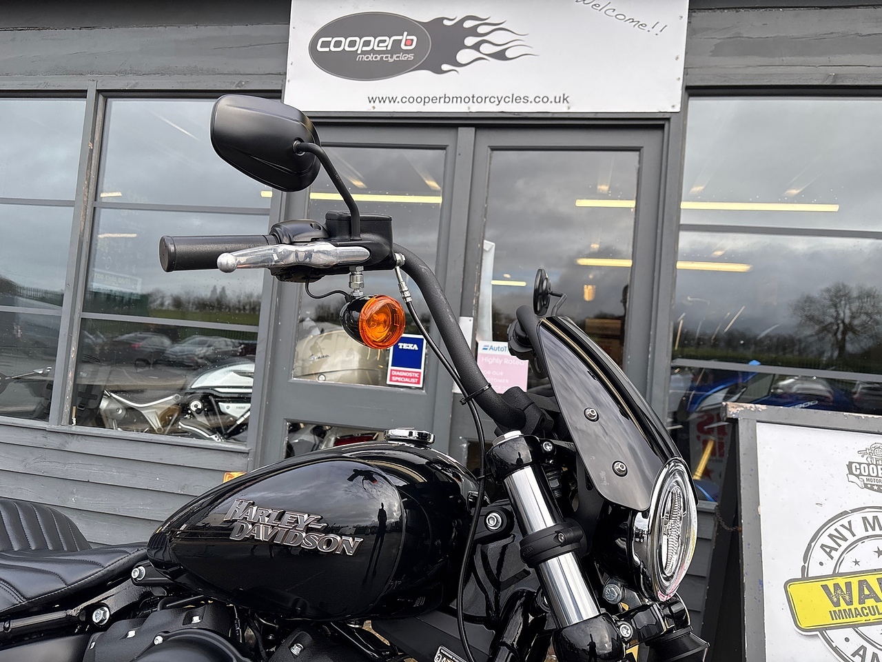 With 145 NM of Torque & looks that would stop a train - The Street Bob is EPIC! This bike is the epitome of modern Harley Ownership! It looks like it should AND with modern suspension & brakes it rides like it should too! This one has Vance & Hines Long Shot Pipes & sounds like thunder! Also fitted Fly Screen to keep the flies out of your teeth! Buy your next motorcycle from “The Home Of Serious Spannerin!” We are VERY fussy about the bikes we sell in our showroom! We vigorously check the bikes before choosing the very best examples, with good service history. Then, our time served, expert, mechanics carefully prepare them to the very highest standards. We only use the best parts & oils in our workshop. We check everything twice, perform a road test and then check again! The bike will only leave when we are happy that its right!