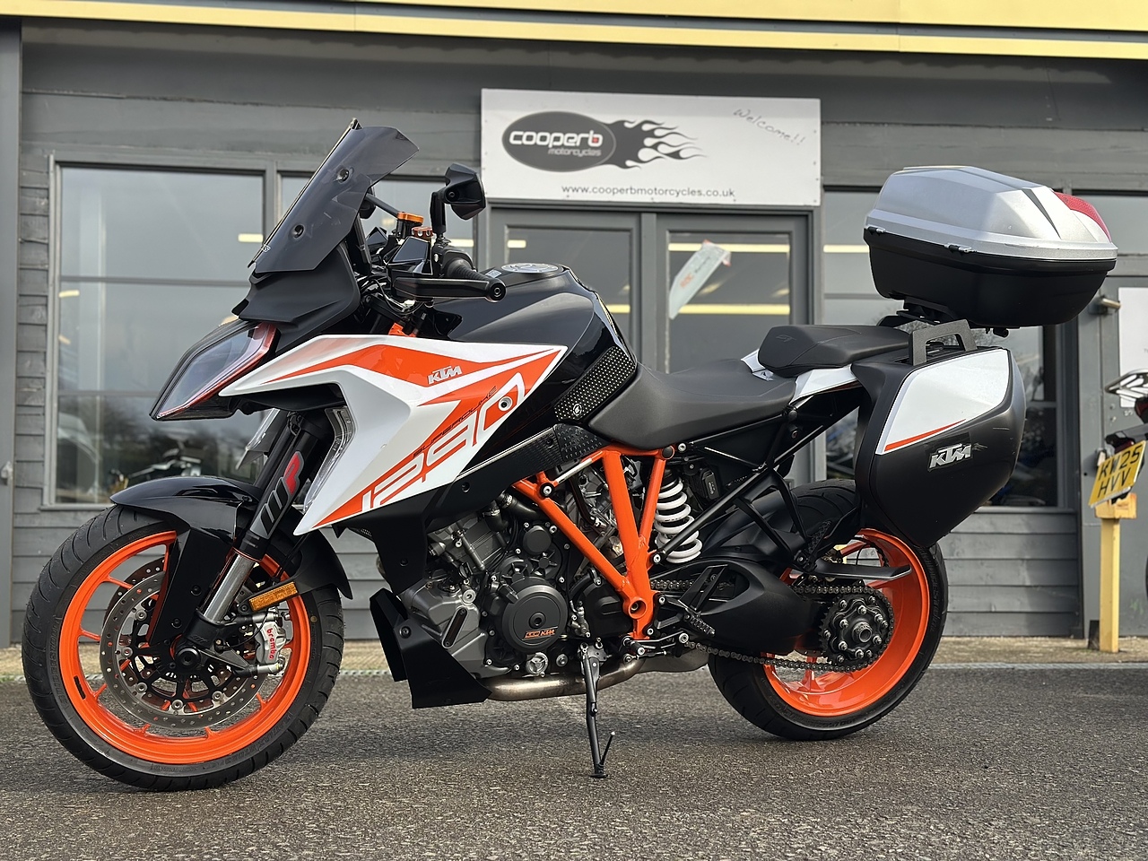 With 175 BHP & loads of tech to play with, the Super Duke is AMAZING! It can purr along like a kitten, then switch rider modes & it roars like a Tiger! Comfy too, with a 23 litre tank offering over 200 miles of range you can make the fun last all day! This lovely example sounds amazing with its Austin Racing Can. Also fitted 3 Box Luggage, Hand Guards, WRS Screen & Eazi Grip Tank Protection Kit. Will have a service & new tyre when sold. What a bike! Buy your next motorcycle from “The Home Of Serious Spannerin!” We are VERY fussy about the bikes we sell in our showroom! We vigorously check the bikes before choosing the very best examples, with good service history. Then, our time served, expert, mechanics carefully prepare them to the very highest standards. We only use the best parts & oils in our workshop. We check everything twice, perform a road test and then check again! The bike will only leave when we are happy that its right!