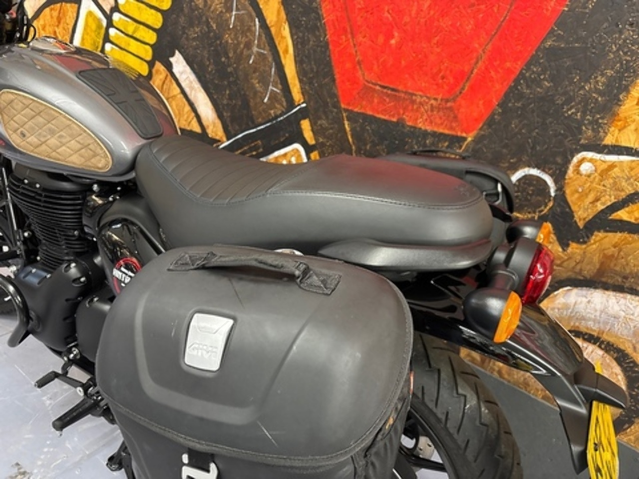 The Royal Enfield Hunter is such a versatile little bike, whether you want to commute into town or blast around the back roads, the Hunter takes it all in its stride. This lovely example has been fitted with some lovely extras including Daytona rev counter, crash bars, sump guard, knee pads, Givi pannier rails, Givi soft panniers + more!